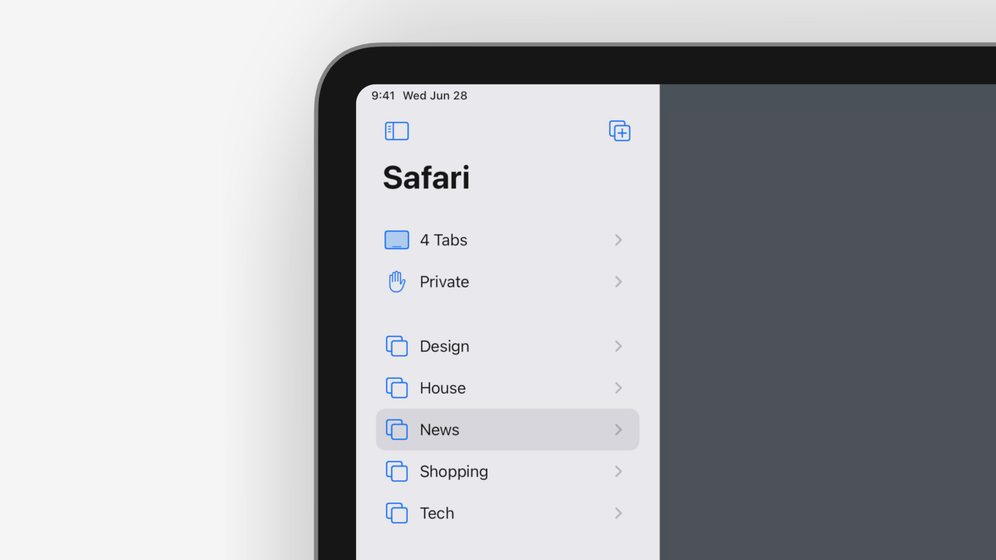To take advantage of the organization Tab Groups provide, we redesigned the Tab Bar on iPad and Mac to be compact.